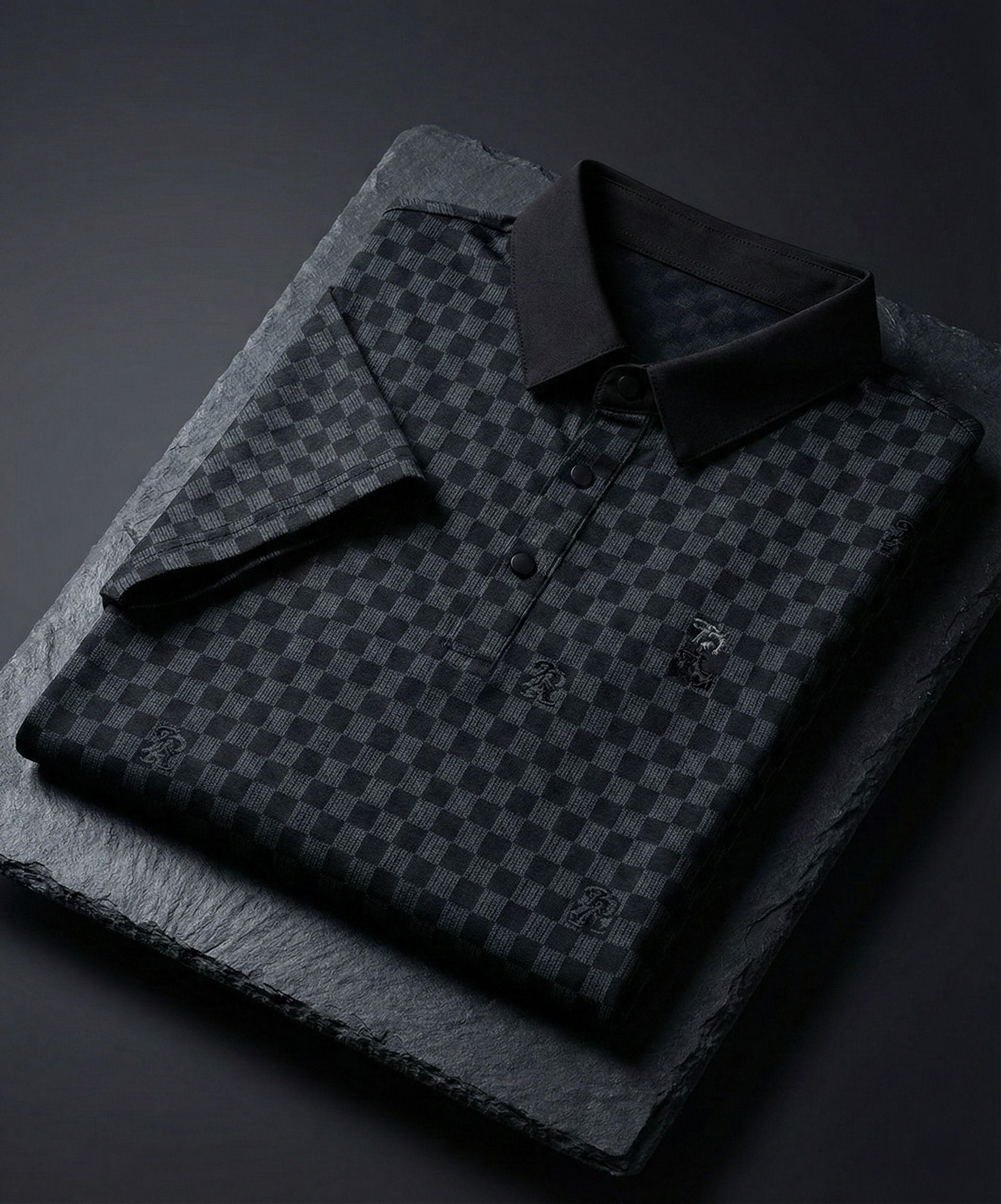 Step into timeless sophistication — the Midnight Gridcrest Polo T-Shirt redefines modern elegance.
